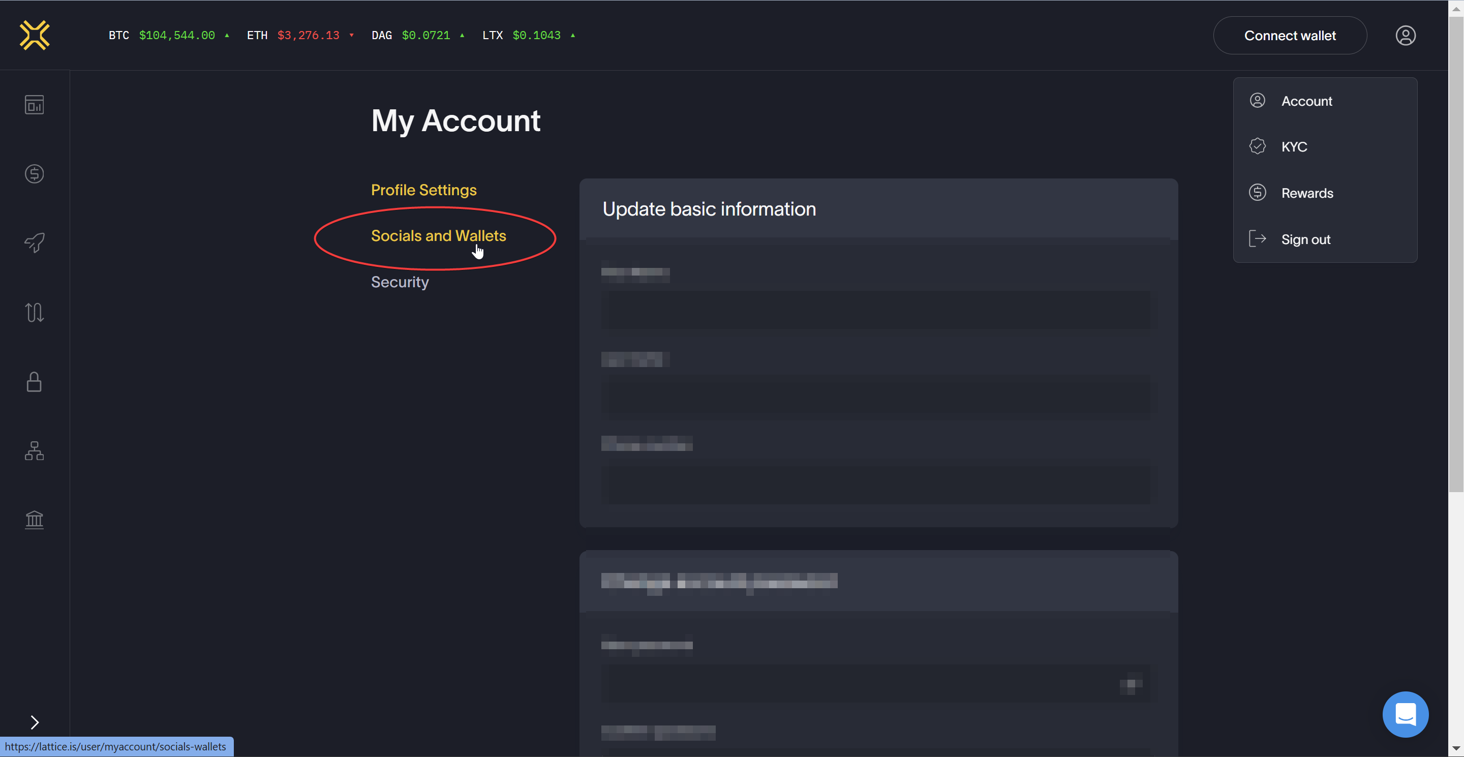 2. Click on **Socials and Wallets** to proceed to the wallet linking page.